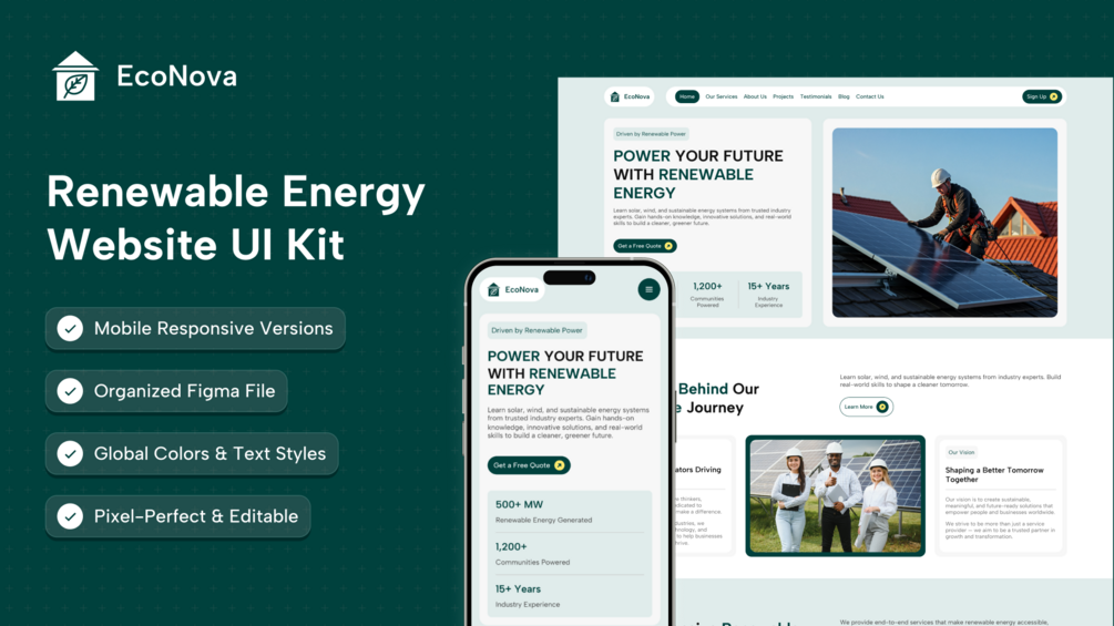 EcoNova – Renewable Energy Website UI Kit