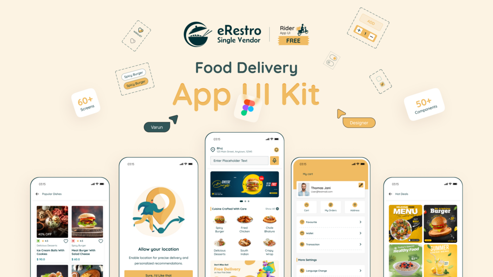 Design faster with our beautifully crafted eRestro UI Kit, built for a seamless food delivery customer experience.
